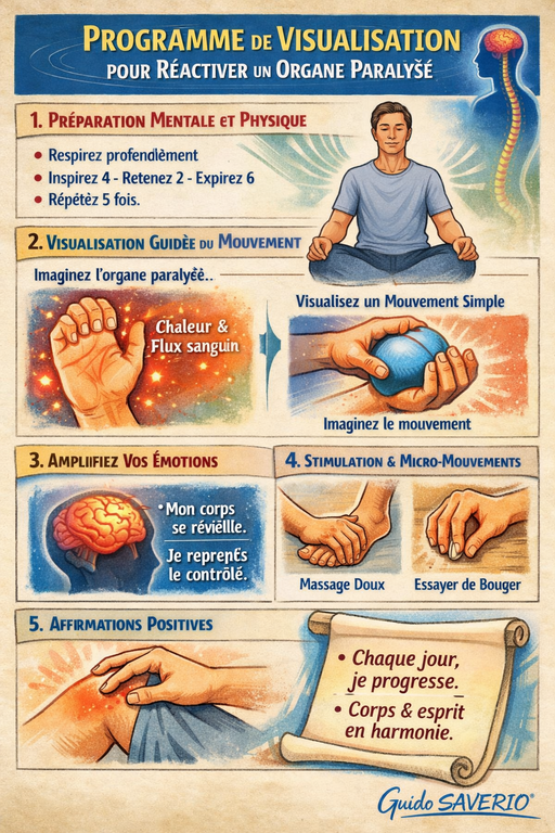Voici un programme pratique et progressif pour utiliser la visualisation afin de tenter de réactiver un organe paralysé. Cet exercice est conçu pour être réalisable chaque jour, avec des étapes claires.